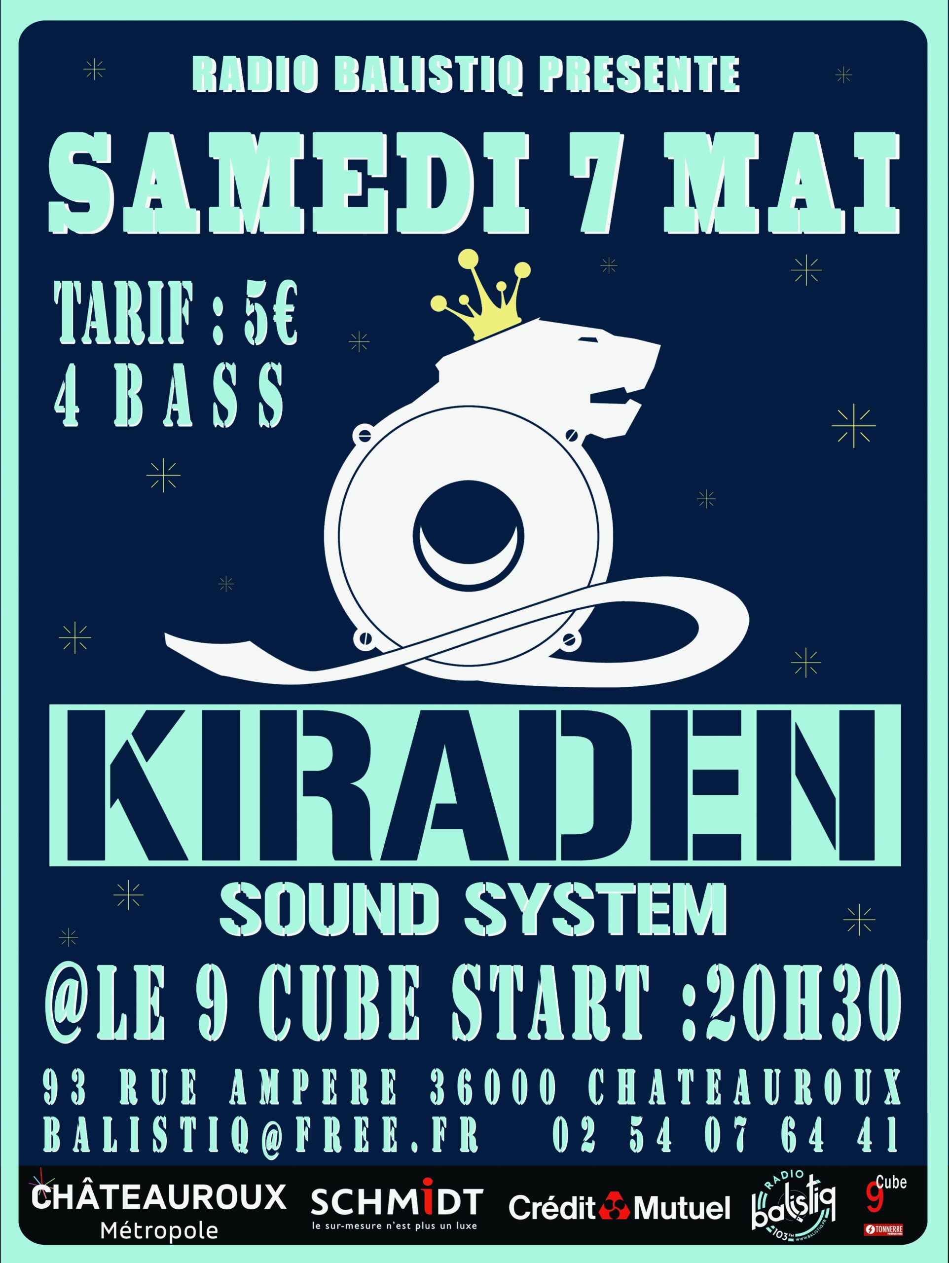 Pour ce prochain épisode, c’est le KIRADEN SOUND SYSTEM qui viendra de Dijon avec son sound system bien connu des passionnés pour sa puissance .Ambiance garantie pour cette soirée ORGANISER PAR RADIO BALISTIQ .