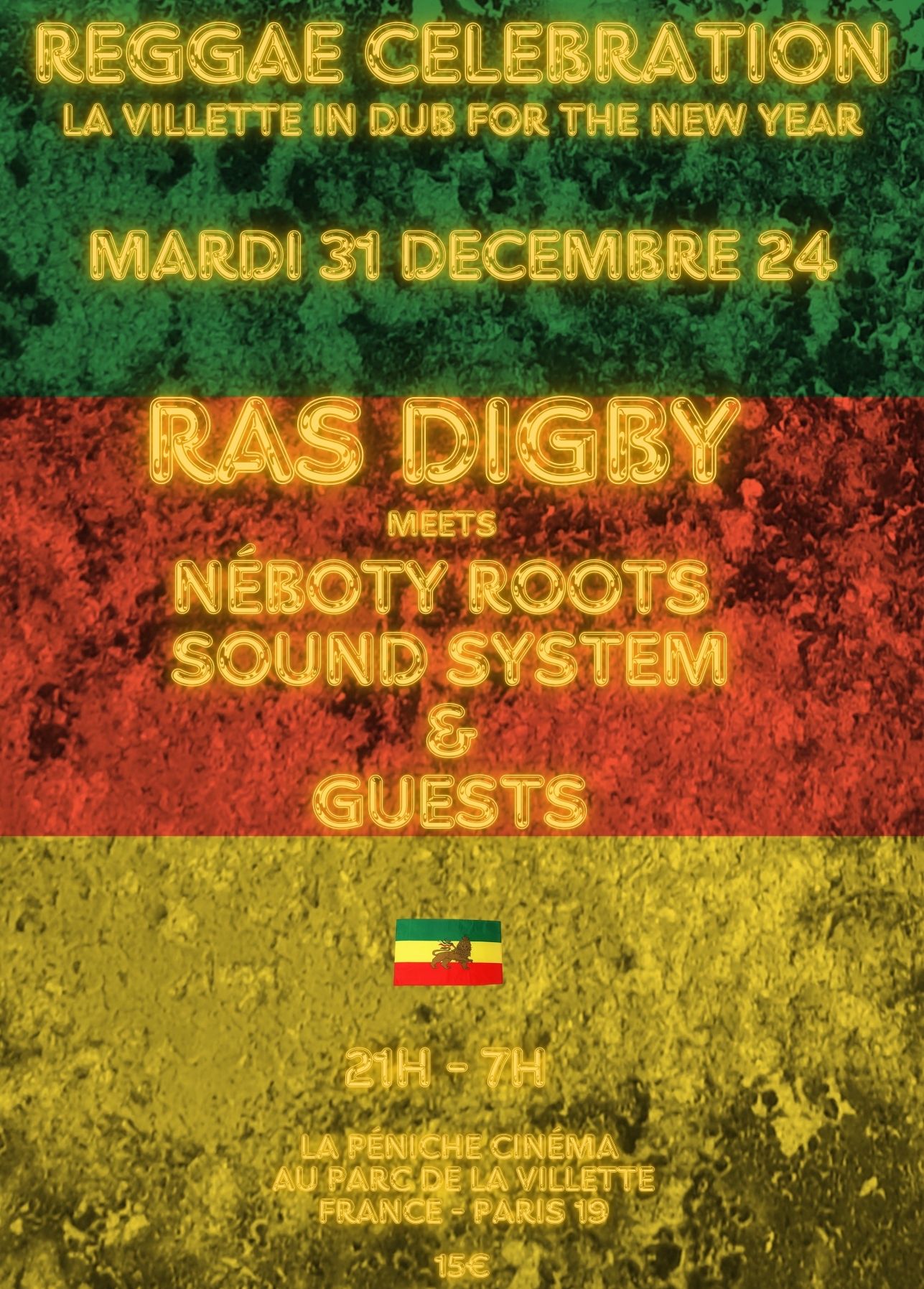 Reggae Celebration pour le Nouvel an à Paris avec Tonton Ras Digby , Néboty Roots Sound system et beaucoup de guests surprise , chanteurs , chanteuses , Mcs , Saxo etc !