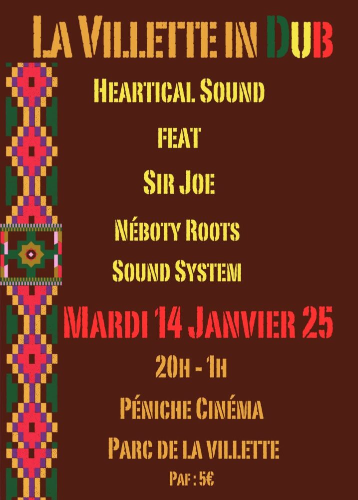 Premier rendez-vous musical de l’année pour HEARTICAL SOUND & LABEL à Paris, on se retrouve ce mardi 14 janvier à La Péniche Cinéma de 20H à 1H, aux côtés de Néboty Roots Sound System !