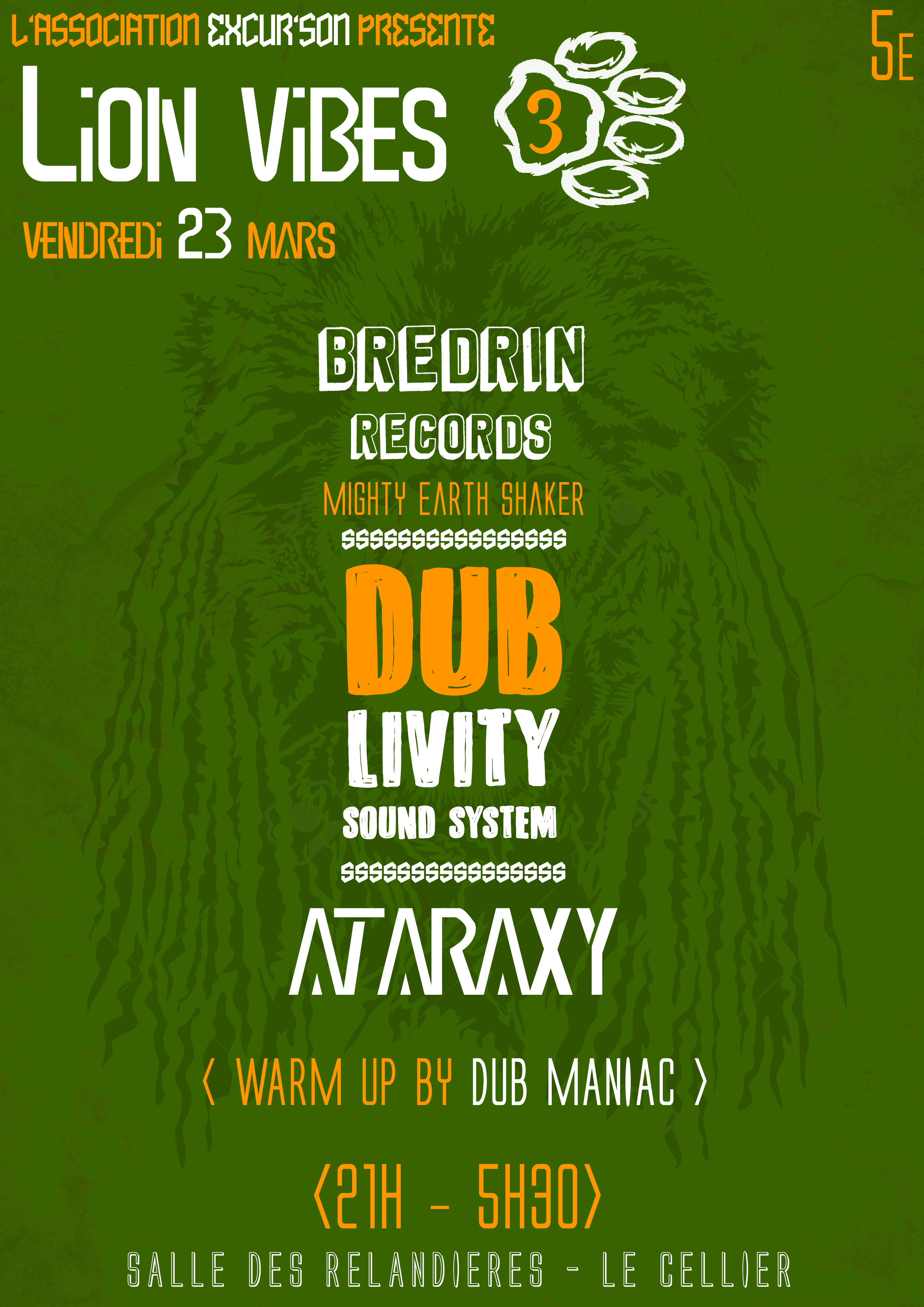 L’association Excur’Son organise pour la troisième fois une Lion Vibes session inna roots/dub/stepper style, serons présent :