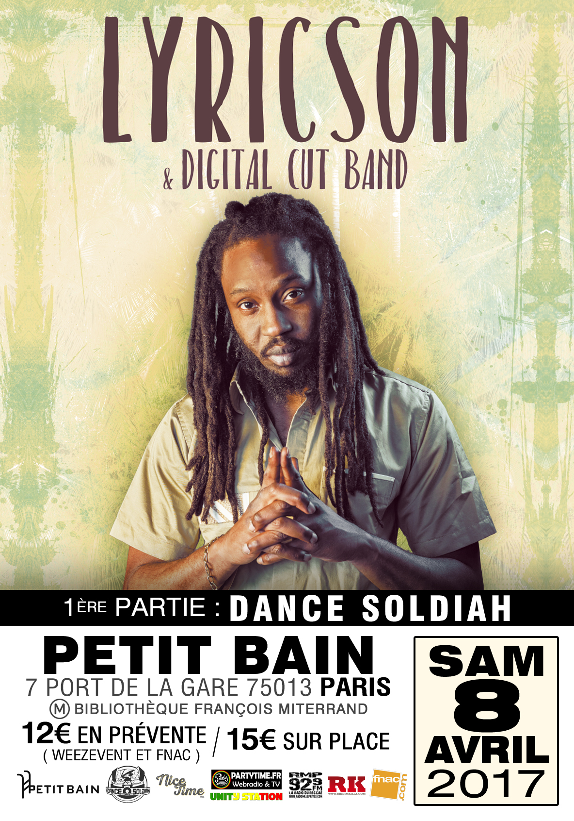 Lyricson sera accompagné du Digital Cut Band pour un live explosif et le sound system parisien Dance Soldiah se chargera de chauffer le public.