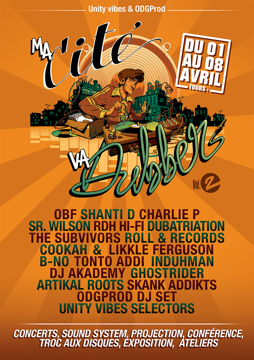 ODGProd et Unity Vibes remettent le couvert et vous proposent la 2ème édition du festival Ma Cité Va Dubber. Au menu : des concerts, du sound system, une exposition, un troc aux disques, une projection, rien que ça ! La culture dub est abordée sous différents angles, de ces racines jusqu’à nos jours, pour en montrer toute sa richesse et ses valeurs.