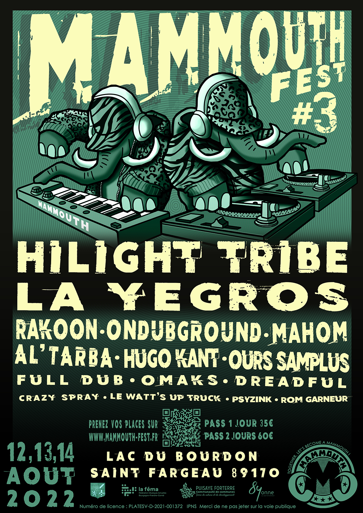 L’asso Mammouth est fière de vous annoncer la troisième édition du MAMMOUTH FEST qui aura lieu les 12, 13 et 14 Août prochain en Bourgogne ! au programme electro dub world music !