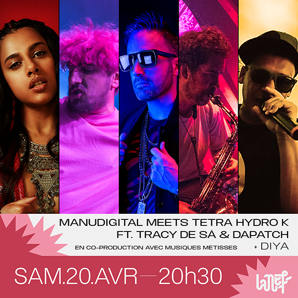 Dub Adventure, c’est la collaboration entre 2 monuments de la scène reggae/dub qui associent leurs talents pour vous offrir une tournée qui s’annonce épique. Un projet éphémère réunissant le mythique duoTetra Hydro K maîtres de l’Electro Dub et le génie du Reggae/Dub Manudigital, connu pour ses nombreuses productions digitales et ses lives ultra énergiques.