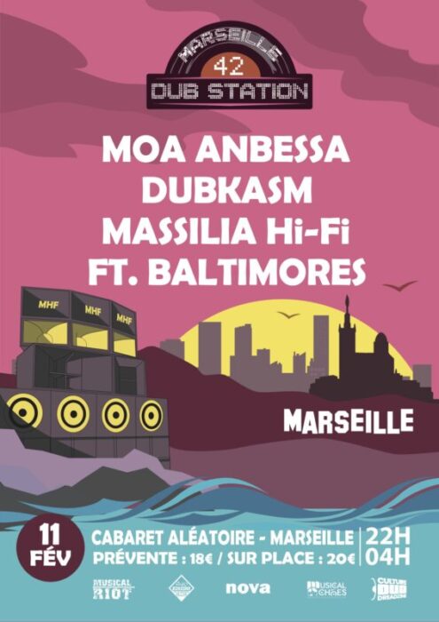 Pour cette nouvelle édition au Cabaret Aléatoire, on accueille les duos anglais de Dubkam, les italiens de Moa Anbessa et les marseillais Massilia Hi-Fi et Baltimores.