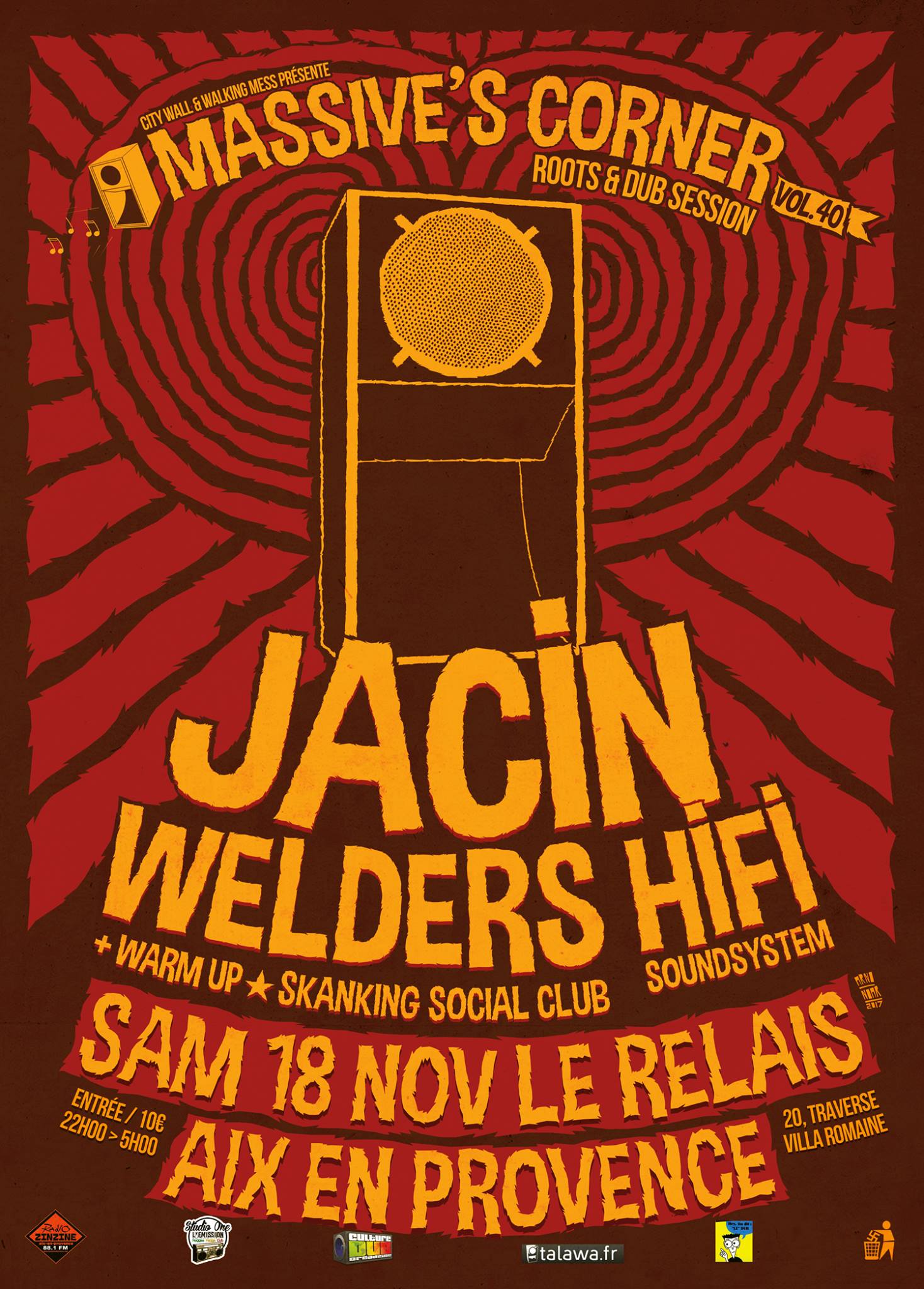 On se retrouve pour la prochaine édition des massive’s corner à Aix-en-provence avec comme invité Jacin dans le cadre de sa tournée européenne, sonorisé par le Welders Hi Fi. Le warm up sera assuré par le Skanking Social Club System