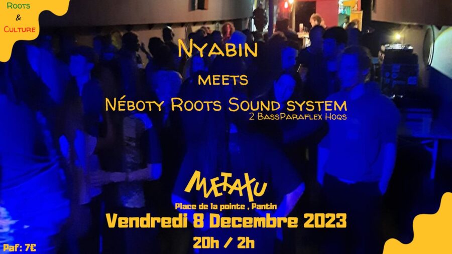 Néboty Roots Corner & Métaxu Pantin vous présentent Métaxu inna Sound system et vous invites pour une nouvelle expérience physique et spirituelle le Vendredi 8 Decembre avec à l’honneur Nyabin meets Néboty Roots Sound system 2 bass Hoqs !!!!