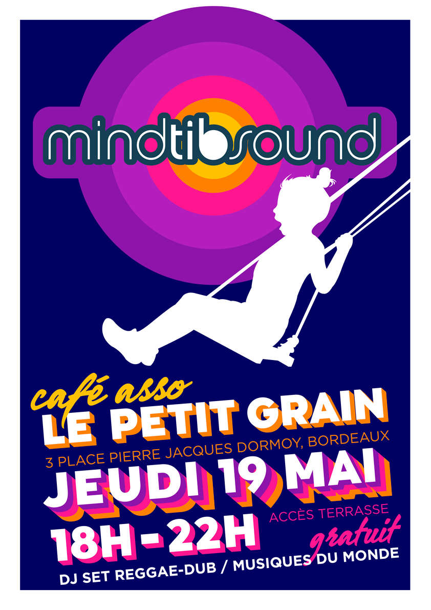 Ce jeudi 19 mai, soyez les bienvenuEs au café associatif LE PETIT GRAIN en plein cœur de Bordeaux pour un apéro musical, de 18h à 22h, en extérieur, sur la toute nouvelle (et grande) terrasse du bar pour une sélection conviviale reggae/dub/cumbia/afro/alternativ’ mix du périgourdin MINDTIBSOUND, c’est gratuit et ça fait du bien ! micro d’improvisation ouvert à toutes et tous !