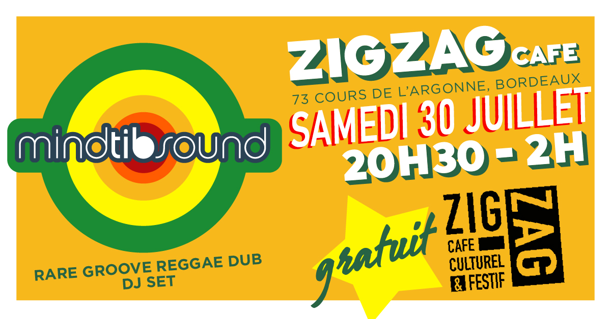 Yes I, de retour au zigzag bar pour partager des bonnes vibrations de 20h30 à 2h reggae (perry, linval Thompson, lkj etc) /dub (dub roots, + uk good style )/reggae français (brahim, k2r, 100 grain de têtes, mix up !!!) mais aussi cumbia, afrobeat, rock alter, manu (têtes raides, ogres etc ) gratos