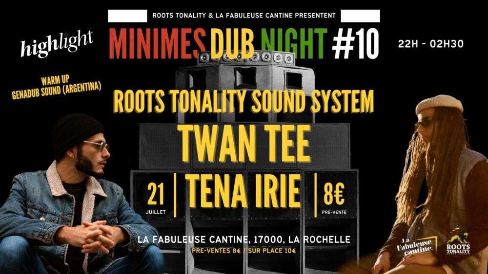 Genadub assurera le Warmup de la session, puis Roots Tonality reprendra le contrôle de la danse avec Twan Tee et Tena Irie qui se chargeront de rider sur tous les riddims jusqu’à 2h30 du matin !