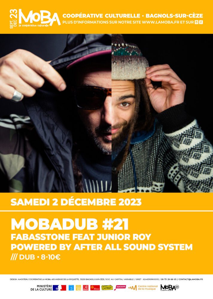 FABASSTONE FEAT JUNIOR ROY / Fabasstone est un pionnier du dub en france. Membre fondateur du mythique groupe High Tone, il vous embarquera pour un vol Lyon/London/Kingston. Junior Roy est quant à lui un MC à l’énergie et aux sonorités reggae. Aux côtés de toutes les générations du mouvement dub (O.B.F Sound System, Ashanti Selah, BAT Records), il incarne parfaitement la mixité de cette musique. Avec ses mélodies et harmonies d’une maîtrise incontestable rappelant les meilleurs classiques d’un côté, il s’imprègne de l’autre aisément de l’esprit de genres plus actuels.