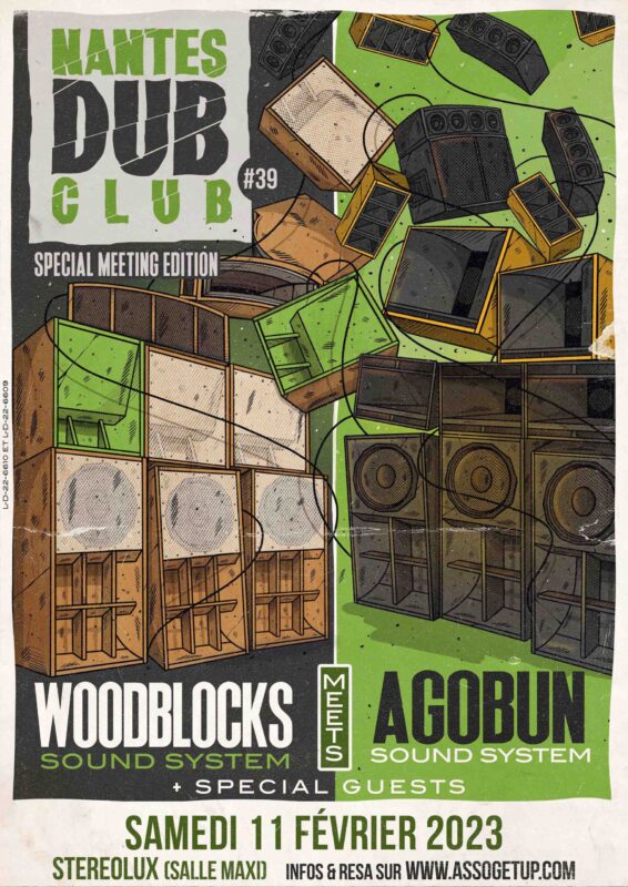 YES, WE ARE BACK Pour son grand retour, Nantes Dub Club s’installe dans la maxi de Stereolux et accueille non pas 1 mais 2 sonos : Woodblocks sound system meets Agobun sound system « full crew »
