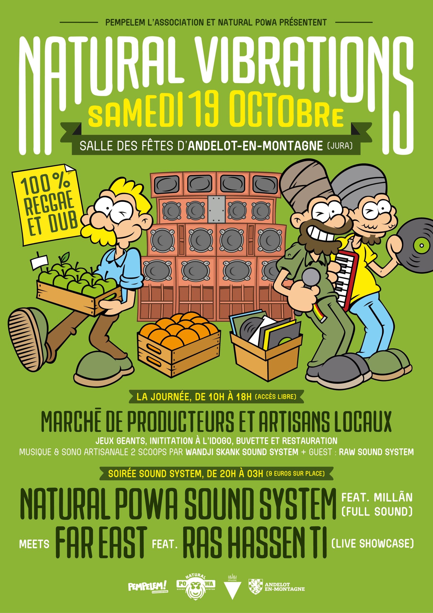 Samedi 19 Octobre, Pempelem l’association et Natural PowA Sound system vous propose une journée dédiée à la culture sound system, à l’artisanat ainsi qu’aux producteurs locaux dans le charmant village jurassien d’ Andelot-en-Montagne.