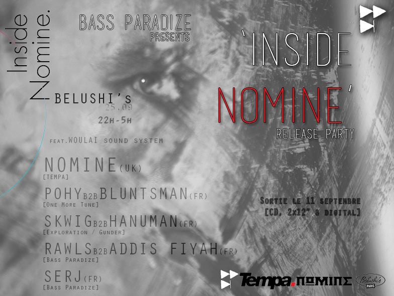 Bass Paradize invite Nomine à l’occasion de la sortie de son nouvel album « Inside Nomine » prévue officiellement le 11 septembre sur le label Tempa. Formats Vinyl, CD et Digital disponibles : bit.ly/BleepInsideNomine