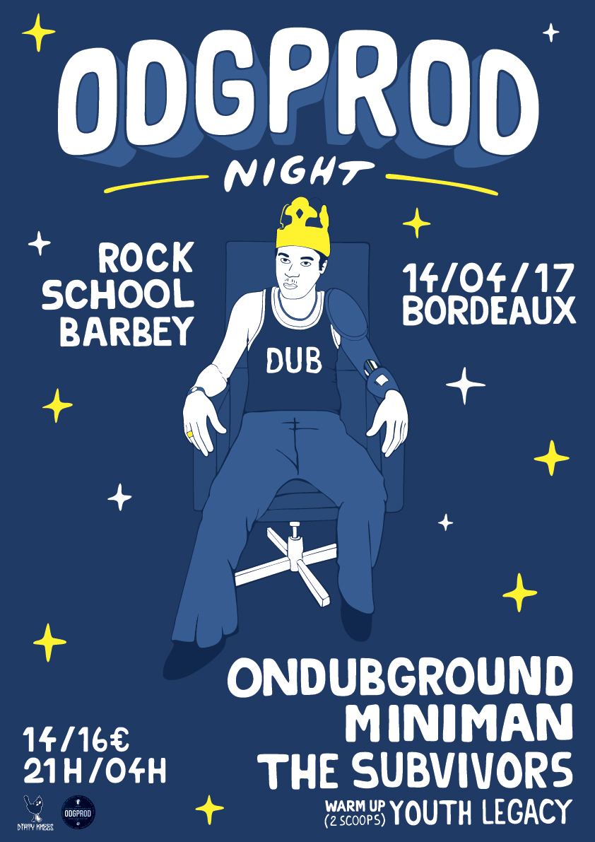 ODGProd est un label dédié à la musique Dub basé sur le téléchargement libre et légal. Les soirées du collectif sévissent aux quatre coins de l’hexagone en laissant derrière elles un public conquis. Pour cette édition unique au Rock School Barbey vous aurez droit à :