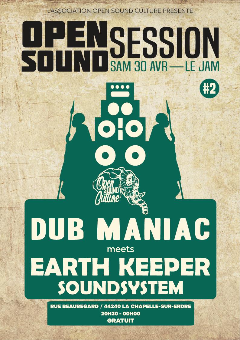 Précédemment au sein d’Open Sound Culture, les membres de l’association s’étaient activés dans le but d’organiser la première soirée Open Sound. L’idée d’un évènement mélant les genres développée par l’esprit du collectif avait aboutie en une soirée sound system. Sonorisée par MELODUB SOUND SYSTEM nous délivrant sa selection Roots & Culture, cette session avait accueilli dans LE JAM à la Chapelle-sur-Erdre, BLACK ESQUISSE, le jeune dubmaker KANDEE ainsi que le groupe EXPEDIXION (OSC Crew) groupe de hip-hop jouant leur instrus en live.