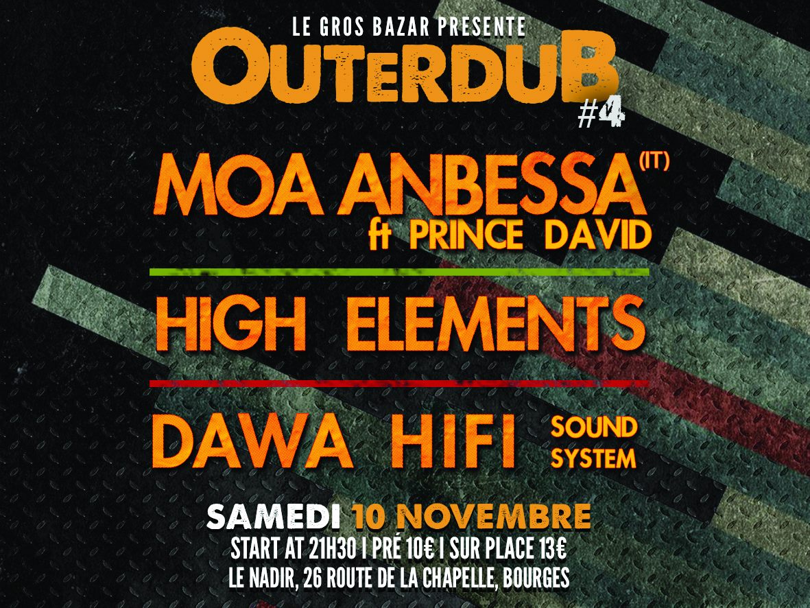 Collectif de reggae et label en provenance de la cité ancestrale de Venise crée en 2005, Moa Anbessa fait résonner les bonnes vibes dub à travers toute la péninsule et partout en Europe. Dr Buriman: dubmaster, selecta et Prince David, chanteur, musicien seront de passage au Nadir avec la furieuse envie de porter au plus haut les couleurs de leur Roots Reggae & Dubwise Conscious.