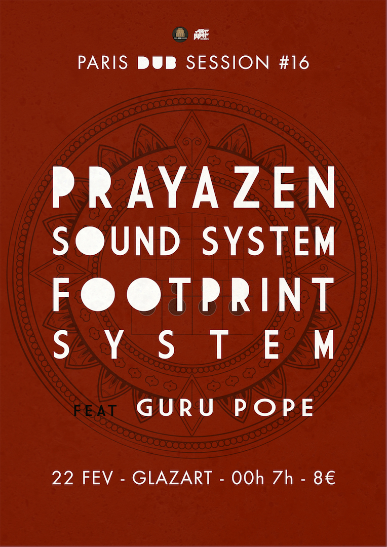Au menu des festivités, LOCAL SOUND SYSTEM ! Nous avons le plaisir d’inviter le crew Prayazen, à l’origine de la Adubtion Family, ils débarquent au Glazart avec leur sono. Pour les accompagner, Footprint System, co-fondateurs et membres actifs d’Adubtion, ils viendront avec leurs meilleurs galettes : du dubwise Uk au musiques traditionnelles,de l’Inde au Moyen-Orient, du Maghreb à l’Afrique de l’Ouest !