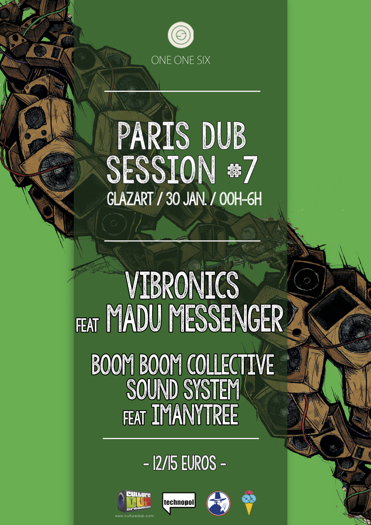 Pour ne pas perdre de temps, on commence dès le mois de janvier avec toujours notre même concept : une nuit de dub sonorisé par le sound system du Boom Boom Collective et un guest d’exception qui nous viendra de Leicester en la personne de Vibronics, présent avec son MC Madu Messenger.