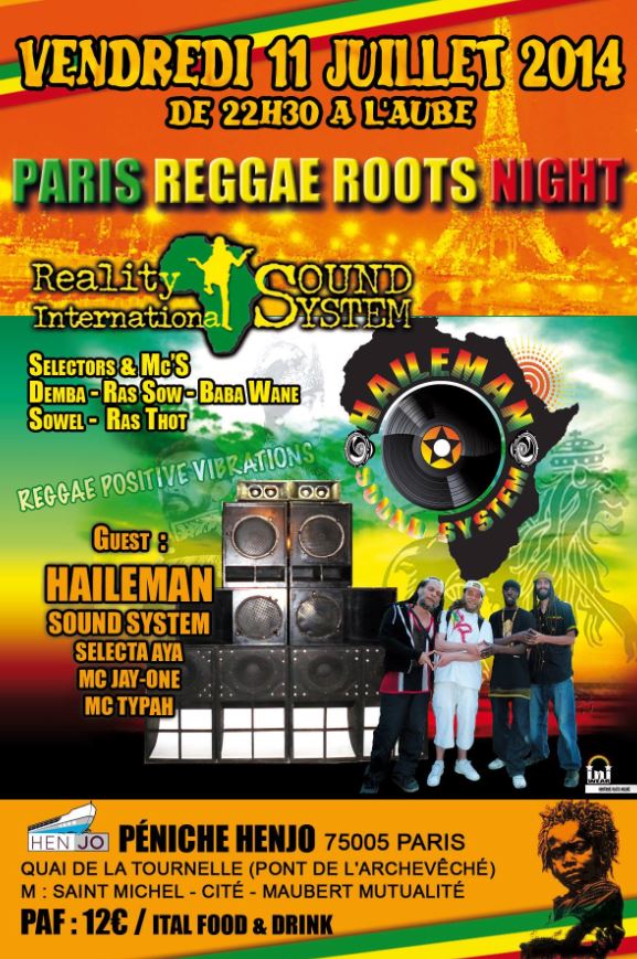 Reality International, sound-system vétéran actif depuis plus de 20 ans, invite Haileman sound pour cette soirée reggae-dub-roots exceptionnelle qui sera une ambiance heavy heavy roots dance à ne manquer sous aucun prétexte. Elle se jouera sur la sono artisanale de Haileman sound. À noter la présence de J-One, sinjay de talent qui a longtemps évolué autour des sounds UK.