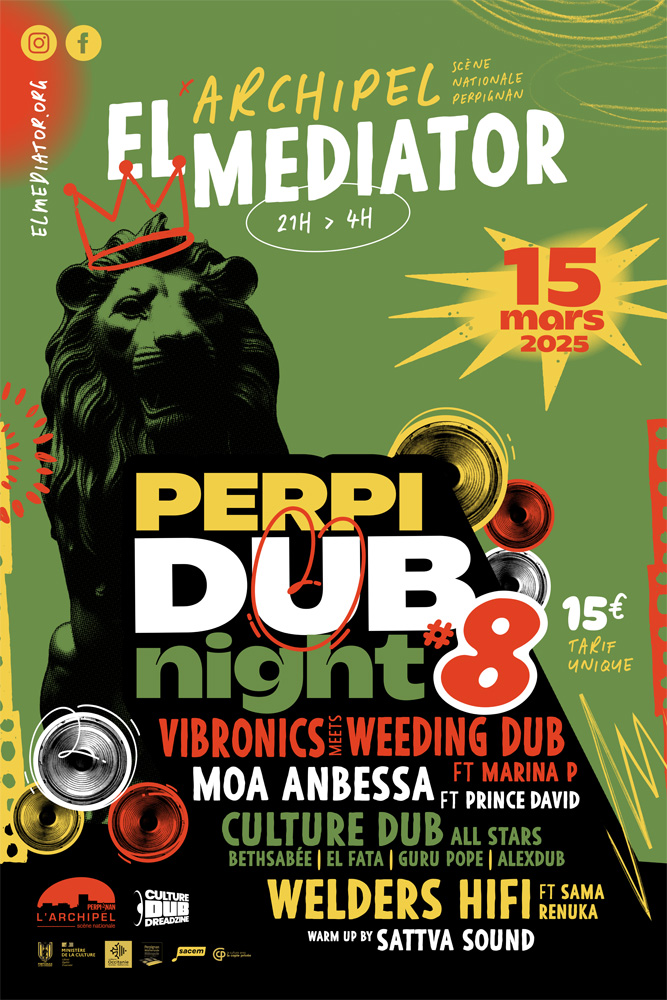 Après 7 éditions légendaires, cette nouvelle édition des Perpi Dub Night, présentée par ElMediator et Culture Dub, proposera de nouveau un line up de folie autour du Dub et de toutes ses formes, que ce soit en Live ou en Sound System, qu’il soit Roots, Stepper ou Electro….