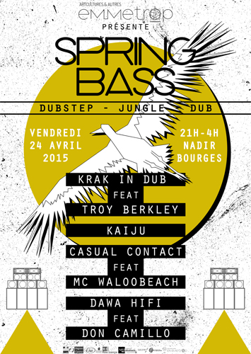 Histoire de vous mettre bien en jambe pour la semaine qui suit, on ouvre le bal du off du printemps de Bourges avec une nuit consacrée à la bass music, du reggae au dubstep en passant par le dub et la Jungle!