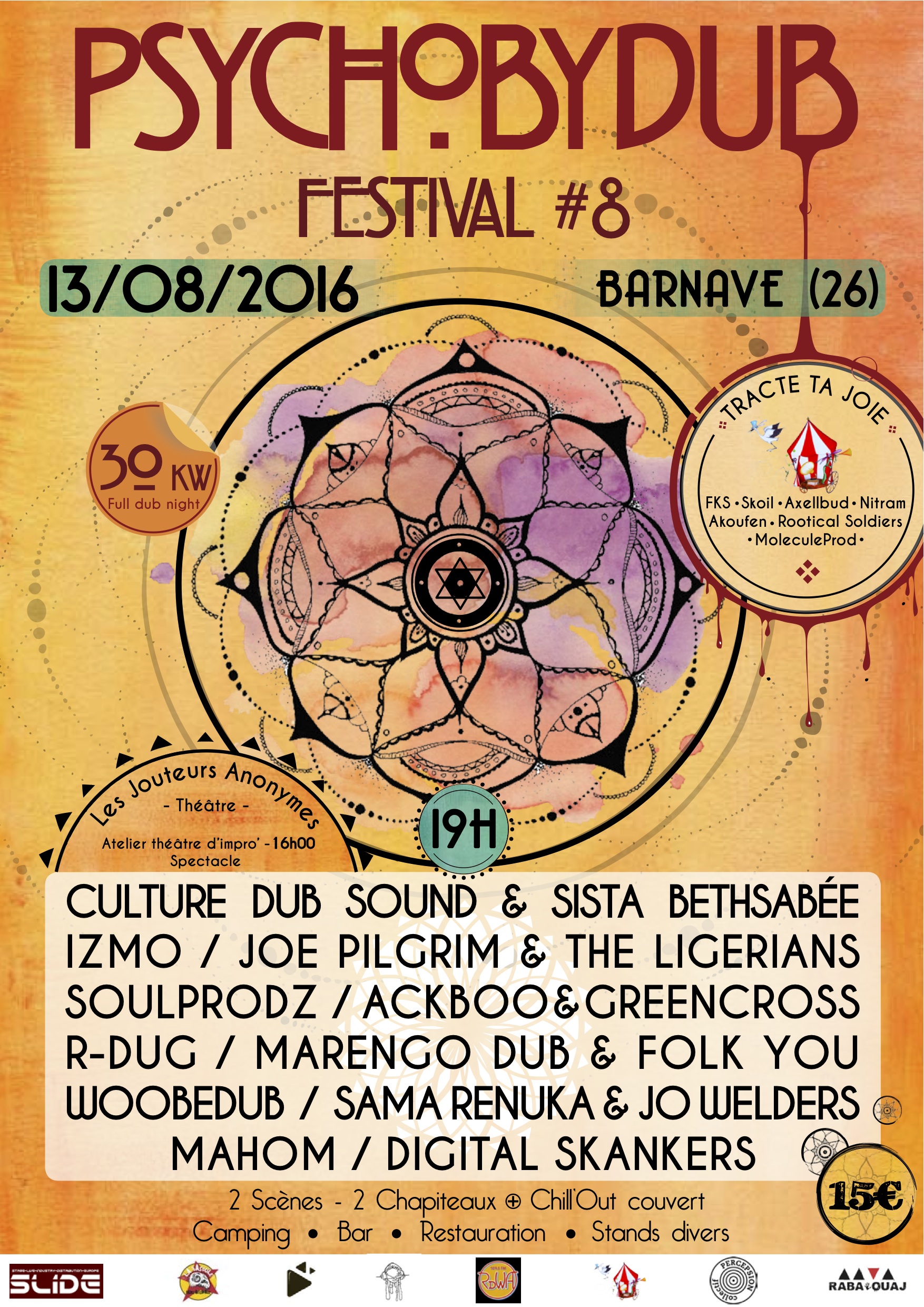30 KW en façade sur le « main stage », 23 artistes ou groupes invités, une troupe de théâtre de rue, projection vidéo, mapping, lumières, structures, chill-out, camping, ital-bio food, bière artisanale locale, clairette de die bio, stands divers…
