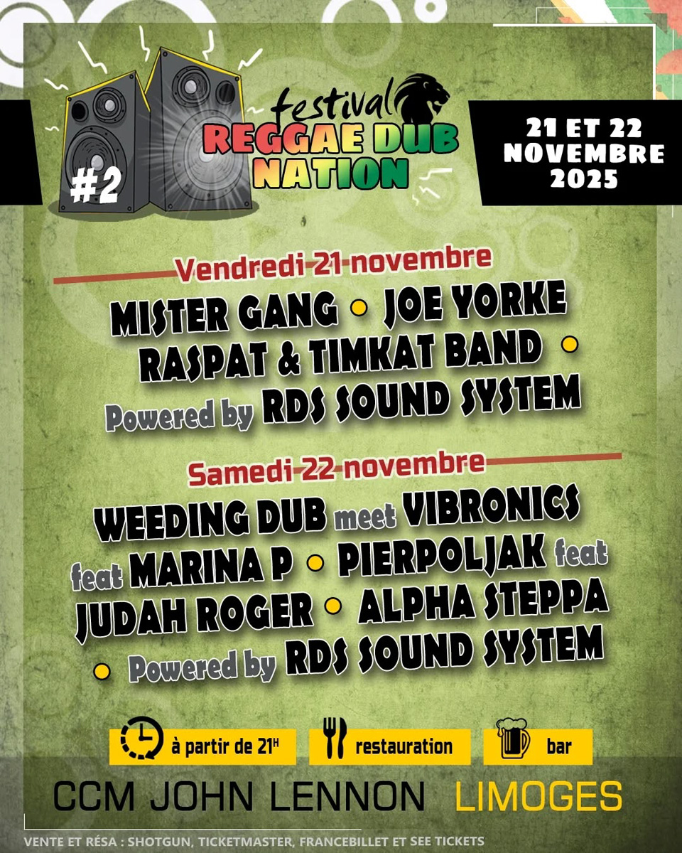 – Samedi 22 : Weeding Dub meets Vibronics feat. Marina P, Pierpoljak feat. Judah Roger, Alpha Steppa et RDS Sound System