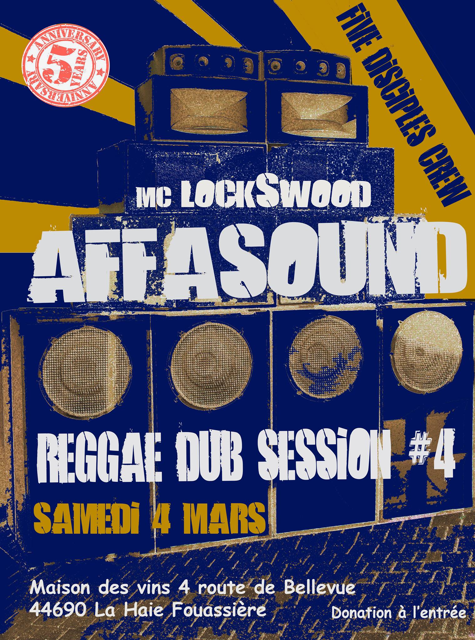 Pour l’occasion AFFASOUND SYSTEM Feat. MC LOCKSWOOD & FIVE DISCIPLES CREW vous feront partager les vibratons du Reggae et du Dub à travers leur sono artisanale respective !!