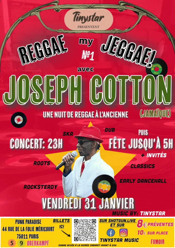 ️ Billets sur: https://shotgun.live/fr/events/joseph-cotton-jamaique-x-tinystar-reggae-my-jeggae-1