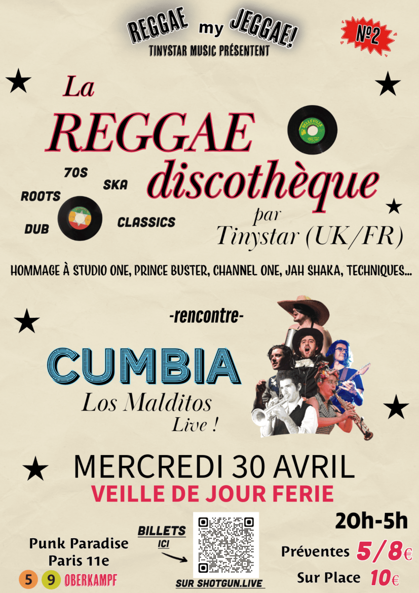 ️ Billets sur: https://shotgun.live/events/reggae-my-jeggae-2-meets-cumbia-tinystar-x-los-malditos