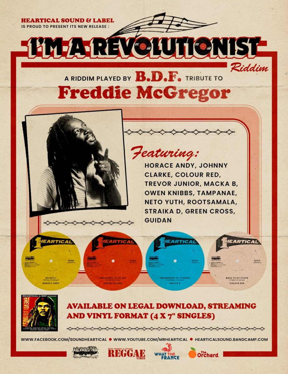 Neboty Roots invite Heartical Sound sur la Péniche Cinéma pour la release party de son nouveau projet one-riddim « I’m a revolutionist » feat. Horace Andy, Johnny Clarke, Colour Red, Trevor Junior, Macka B, Owen Knibbs, Neto Yuth, Green Cross, Straika D, Rootsamala, Tampanae et Guidan… Déjà disponible en vinyl et sur Bandcamp, sortie digitale mondiale le 16 mai 2025 !