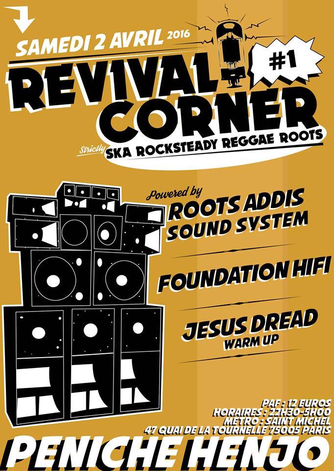 Les soirées REVIVAL CORNER ont pour but de diffuser les racines de la musique jamaïcaine. Du ska au roots militants en passant par le rocksteady ce sont les années 60-70 qui seront mises à l’honneur par les différents crews présents.
