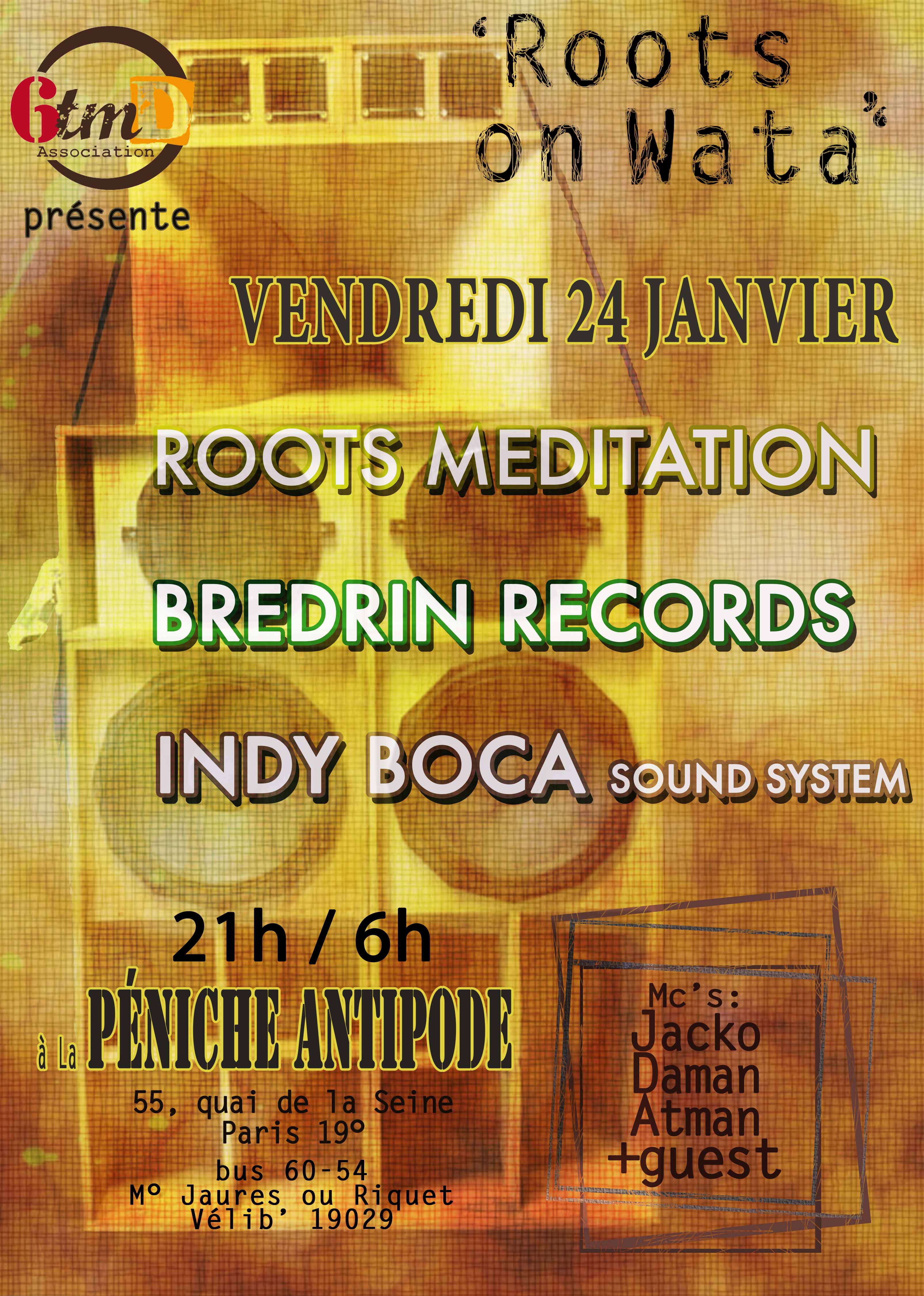 local_playSound System date_rangeLe access_timeDébut à 21 h 00 min placeÀ Peniche Antipode, face au 55, quai de la Seine,
