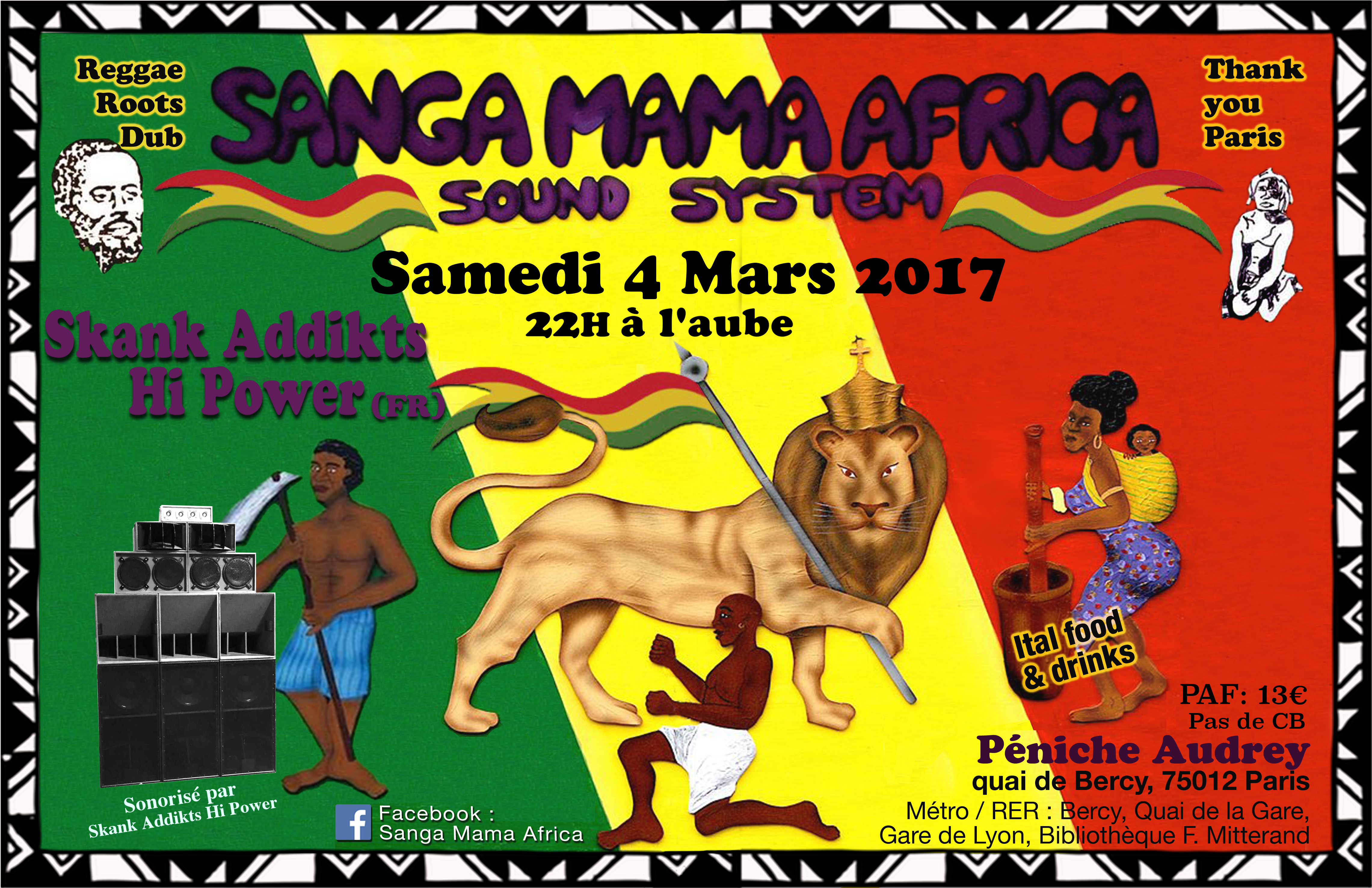 Sanga Mama Africa vous invite à la Reggae Dubthérapie le samedi 04 Mars 201è de 22 h à l’aube.