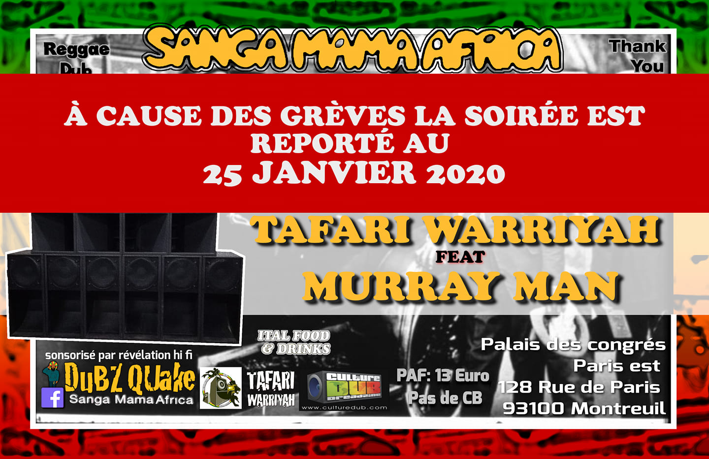 Pour mieux nous retrouver, la Dubtherapy est reportée au samedi 25 janvier 2020, avec Tafari Warriyah Soundsystim feat Murray Man& Murrayman Murrayman comme initialement prévu