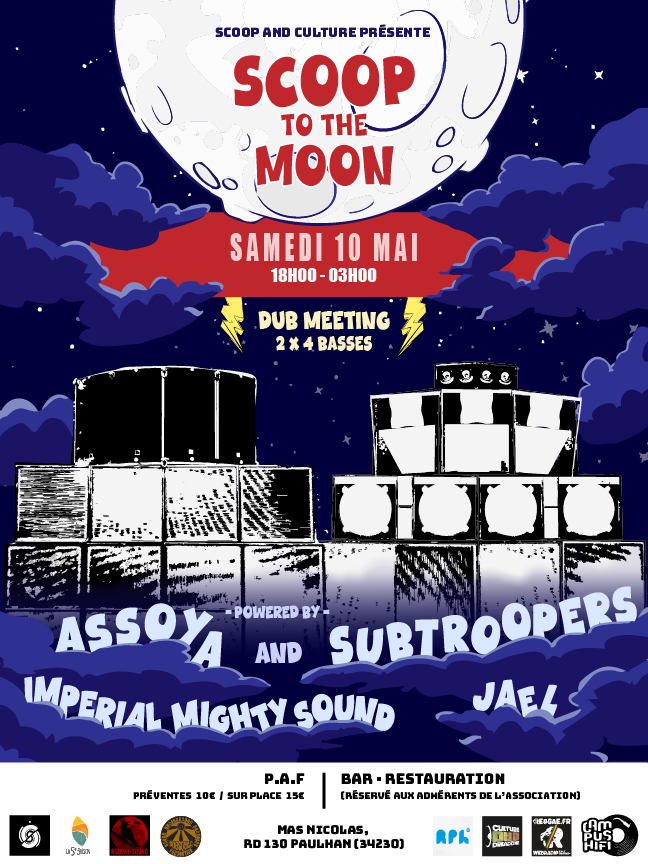 Scoop and Culture, en collaboration avec l’Association La Cinquième Saison, vous présente Scoop to the Moon, un événement qui aura lieu le samedi 10 mai 2025, de 18h00 à 03h00, au Mas Nicolas à Paulhan (34230).