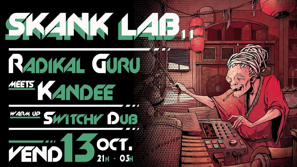 Fort de ses expériences en tant que musicien (bassiste dans des groupes de Punk et de Dub), SwitchyDub assure désormais en solo derrière ses machines. Anti-Gel, son deuxième opus, mélange mélodies technoïdes, skanks tranchants, beats percutants à 150 bpm, et basses profondes. À mi-chemin entre dub et hard stepper, imprégné de la scène hardtek (TNT, InfraBass, Spiral), mais aussi des groupes tels que Zenzile ou HighTone, SwitchyDub assurera le warm up de cette Skank Lab, parfait pour se dégourdir un peu les jambes.