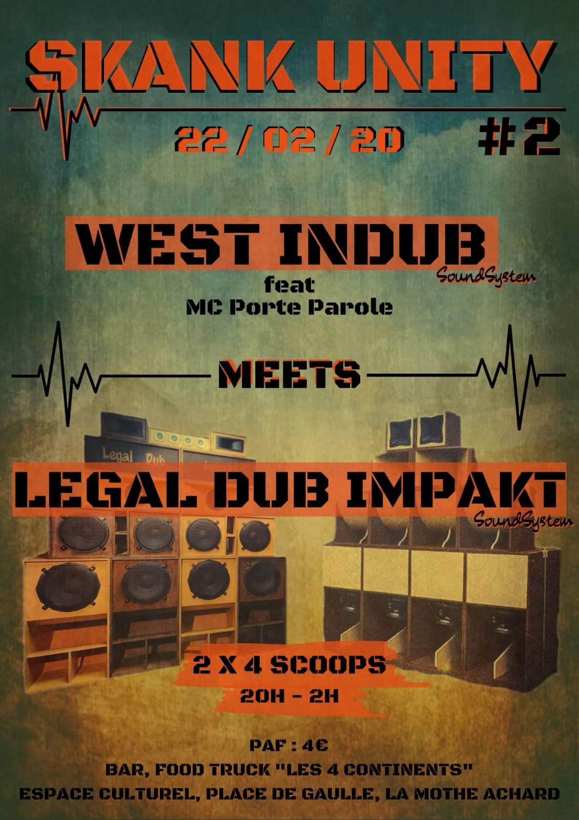 Hey people !! Prêts à bien commencer l’année 2020 avec nous ?? On a le plaisir de vous annoncé notre mettons annuel skank unity #2 . Le wid crew a décidé de vous mettre bien en re-invitant les potos du legal dub impakt sound system(44). Une invitation un peu spéciale pour nous car ils faisaient déjà partie de la prog de notre première soirée en 2018 . Ils viendront posé leur 4 scoops sortis du même atelier que le notre . Croyez nous ça va ronflez à coup de dubplates made in jack(a.k.a radikal 715). Évidemment, on pose nos 4 basse aussi et nico alias porte parole viendras nous partager ses lyrics. Comme d ´ habitude , on vous serviras l excellente bière bio de la brasserie locale garatelle et le food truck les 4 continents seras là pour vous ravir les papilles .