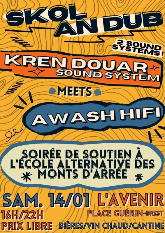 Les fonds récoltés par la soirée seront reversés à L’Ecole Alternative des Monts d’Arrée. C’est une asso qui propose du soutien aux personnes réfugiées, mineur.e.s isolé.e.s ou demandeurs/demandeuses d’asile dans la région de Morlaix. Elle propose des cours, un hébergement, un accompagnement médical et administratif, et bien plus encore…