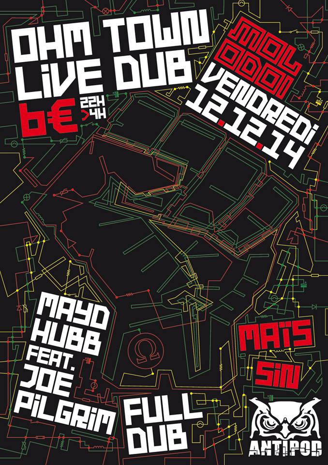 Le label Antipod est de retour au Molodoï le vendredi 12.12.2014 pour vous présenter la soirée « OHM TOWN » et invite pour l’occasion deux groupes incontournables de la scène dub française: MAYD HUBB qui sera accompagné du chanteur JOE PILGRIM et FULL DUB.