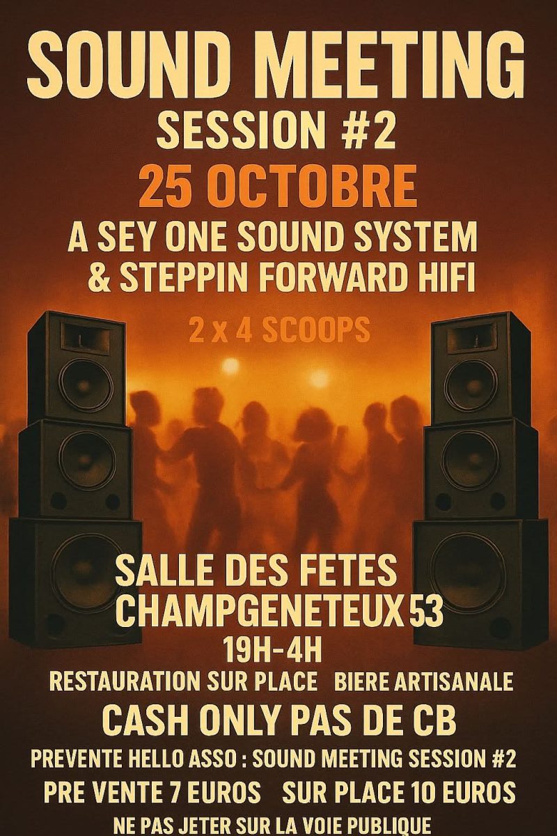 Prépare tes oreilles : 2 crews, 4 scoops chacun et une seule mission : te faire skanker jusqu’au bout de la nuit ! A Sey One Sound System invite Steppin Forward Hifi pour un sacré bordel