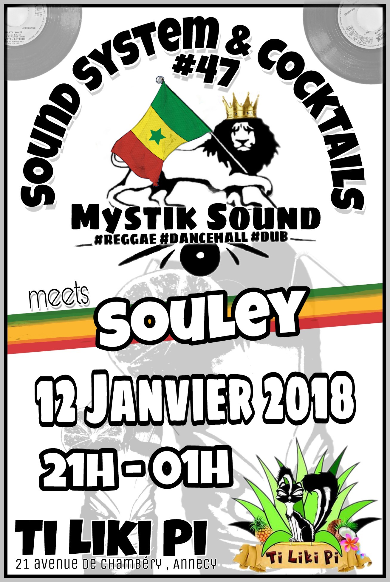 Mystik Sound démarre sa 4 ième année de résidence au bar à coktails Le Ti Liki Pi le 12 janvier, avec Souley, chanteur franco-senegalais d’Annecy et membre de l’association La Liane