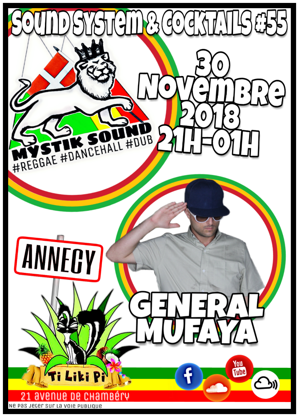 General Mufaya , chanteur reggae dancehall originaire de Sallanches, viendra poser ses lyrics avec Mystik Sound au Ti Liki Pi à Ville d’Annecy .
