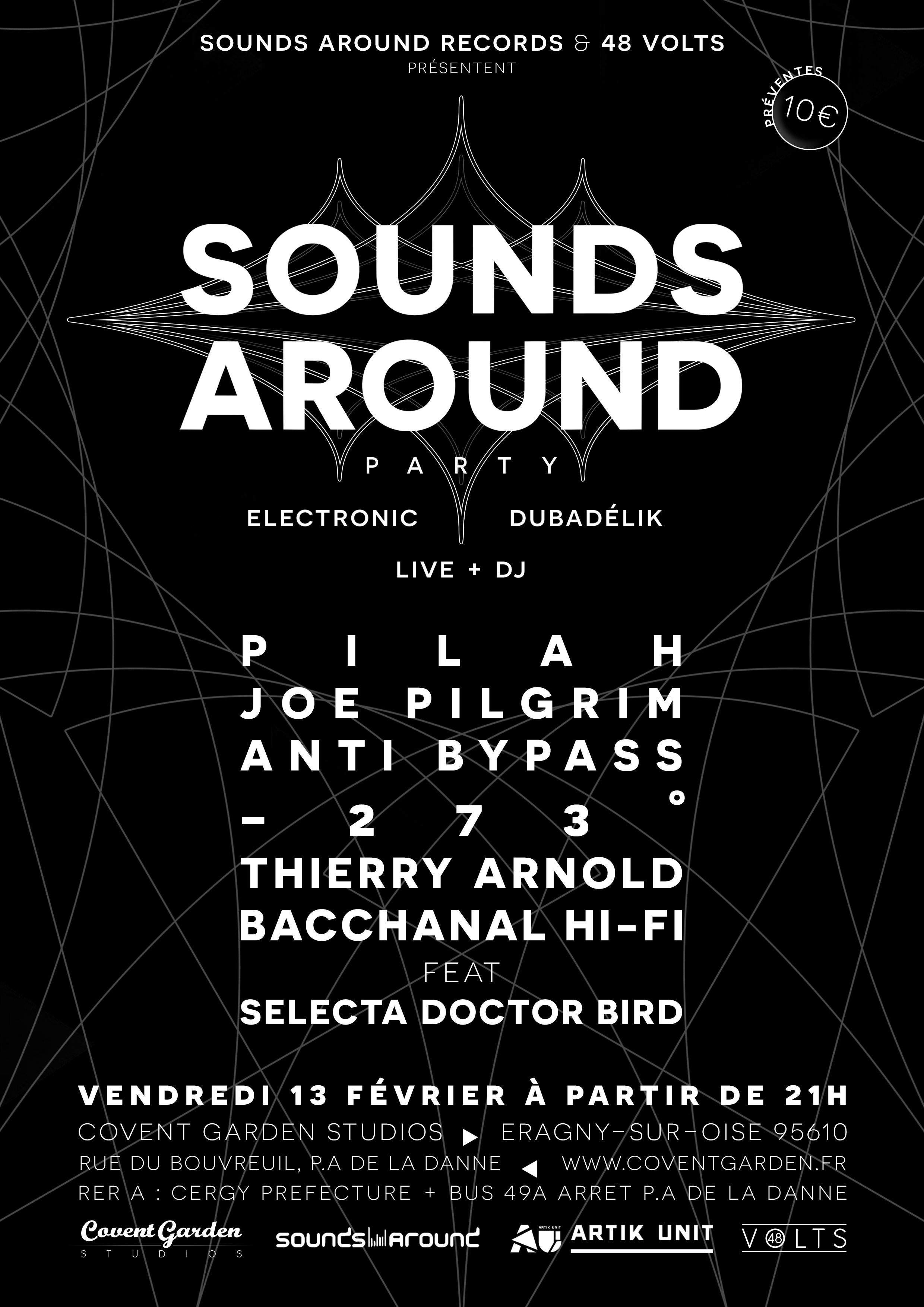 Sounds Around et 48 Volts, organisent la première édition de Sounds Around Party en partenariat avec l’Agence de booking Artik Unit.