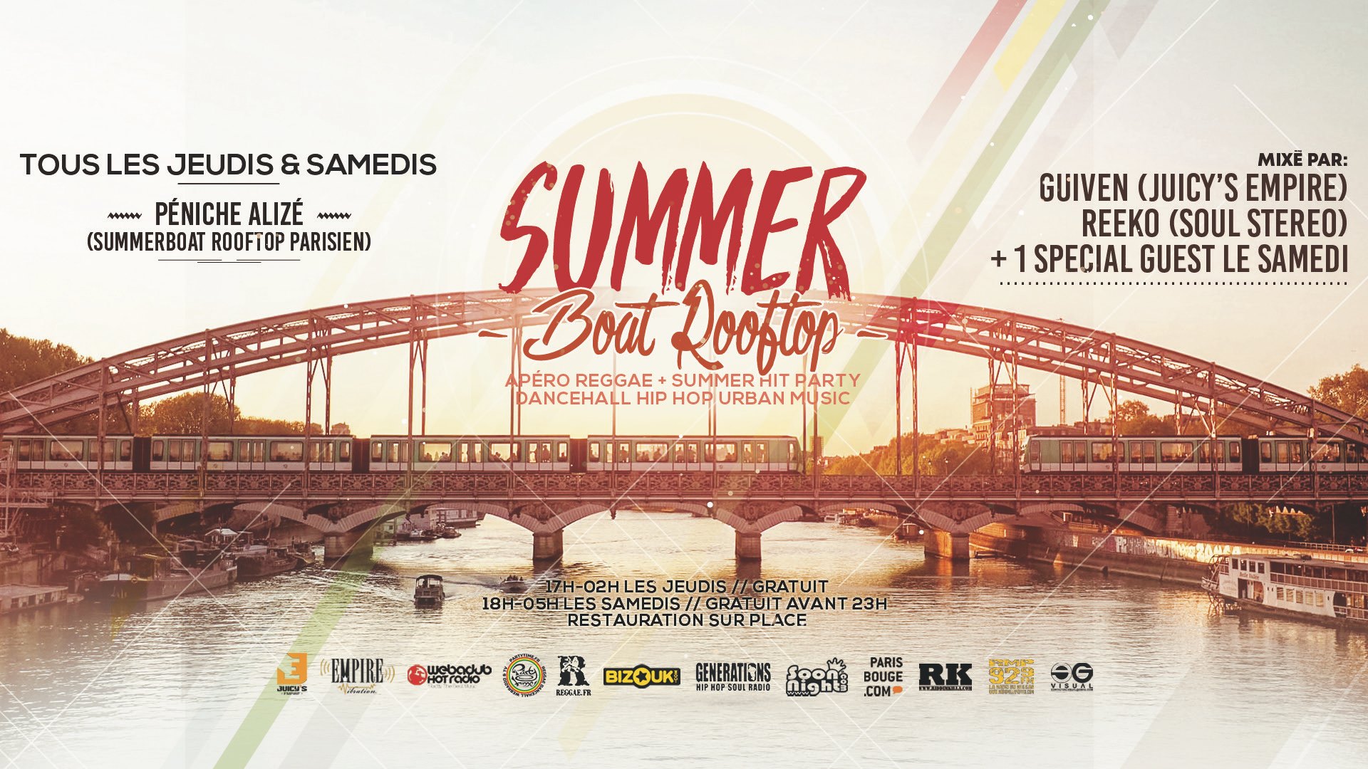 23h 1h30 (En Terrasse) Chilling Summer Roots Rocksteady Reggae Dancehall en mode Summerboat rooftop parisien, transat,canapé
