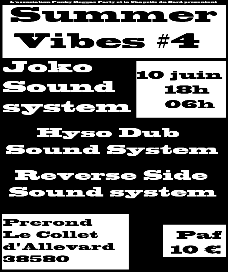 Utilisé depuis 3 ans pour les Summer Vibes et ayant accueilli les 2 premiere edition de l’Alp in Dub Festival, ce lieu a vu passer de nombreux crews du coin. En passant par Ubik from Geneva en 2016 ou Tribal Roots, Natural Bashy, en 2015, cette édition 2017 sera une dance comme ont les aimes car nous accueillerons 3 sounds de la région chacun avec ca sono pour vous faire vibrer sur les dernieres production maison et releases du moment