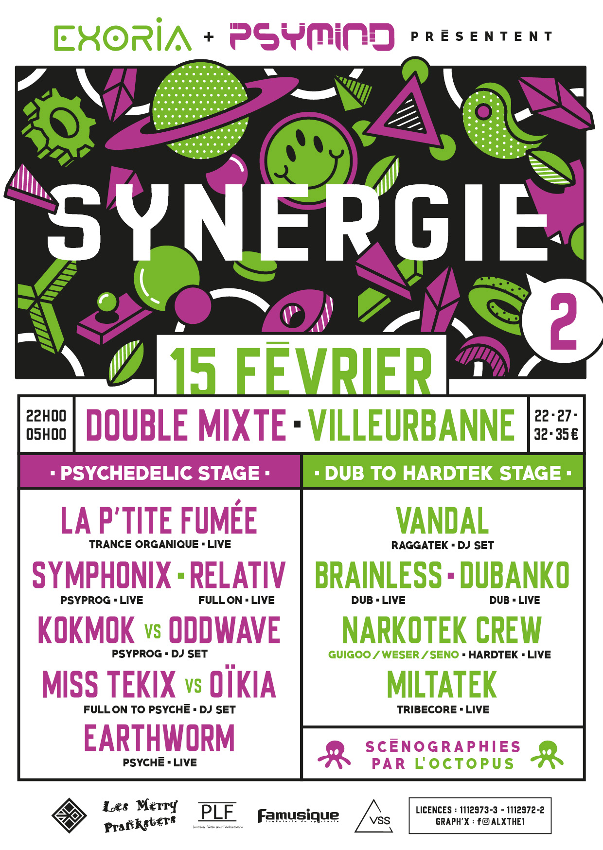 2 SALLES : LA P’TITE FUMÉE ? SYMPHONIX ? RELATIV ? NARKOTEK CREW ? VANDAL ? MILTATEK ? KOKMOK VS ODDWAVE ? MISS TEKIX VS OÏKIA ? EARTHWORM ? BRAINLESS ? DUBANKO