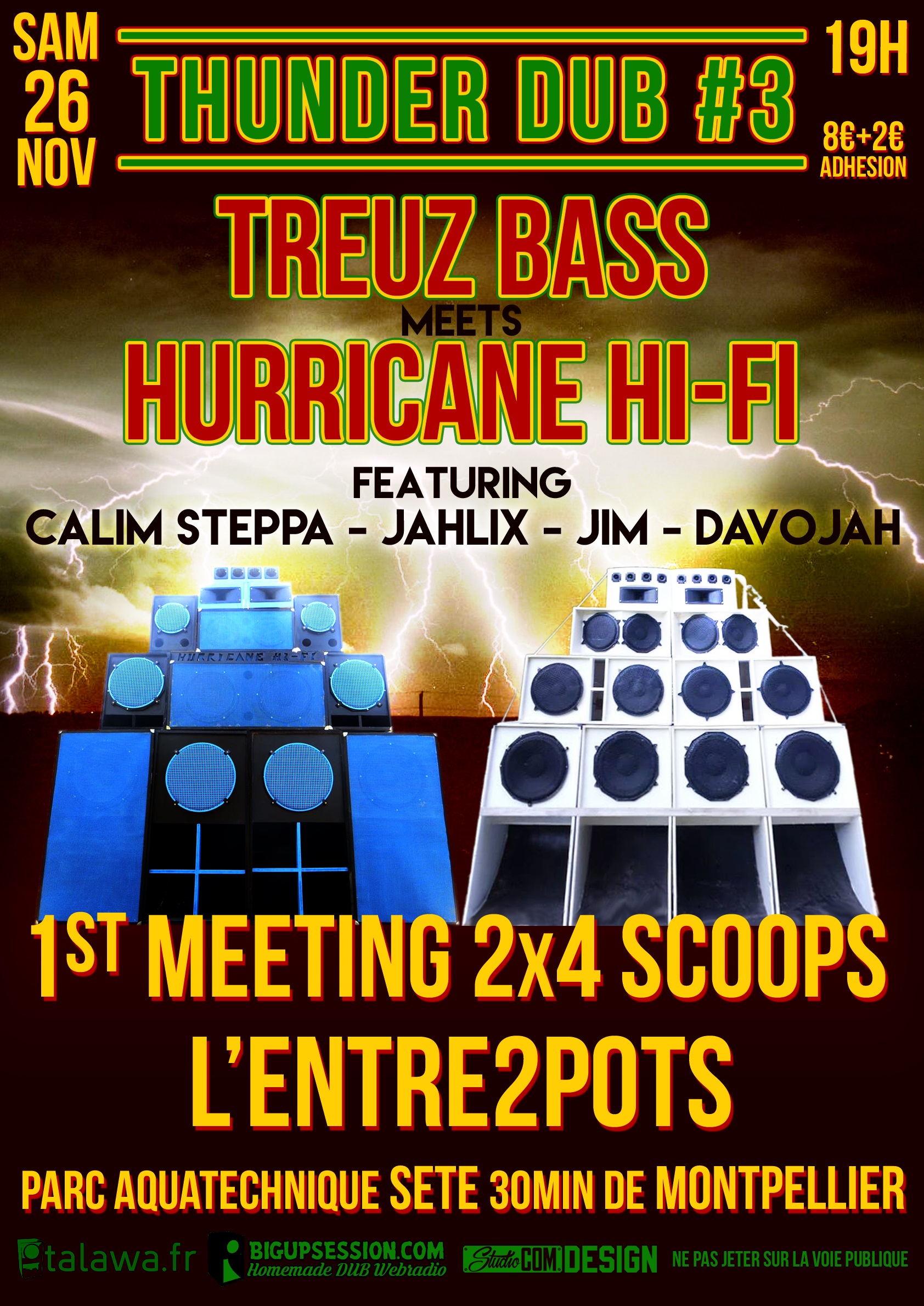 Hurricane Hi-Fi ( Avignon ) invite Treuz Bass basé en Isère avec leur Riddim Maker Jahlix. On a également demandé à DAVOJAH ( Perpignan) de nous accompagner sur les versions ainsi qu’à Jim du Danjah Roots Crew. ( Nîmes)