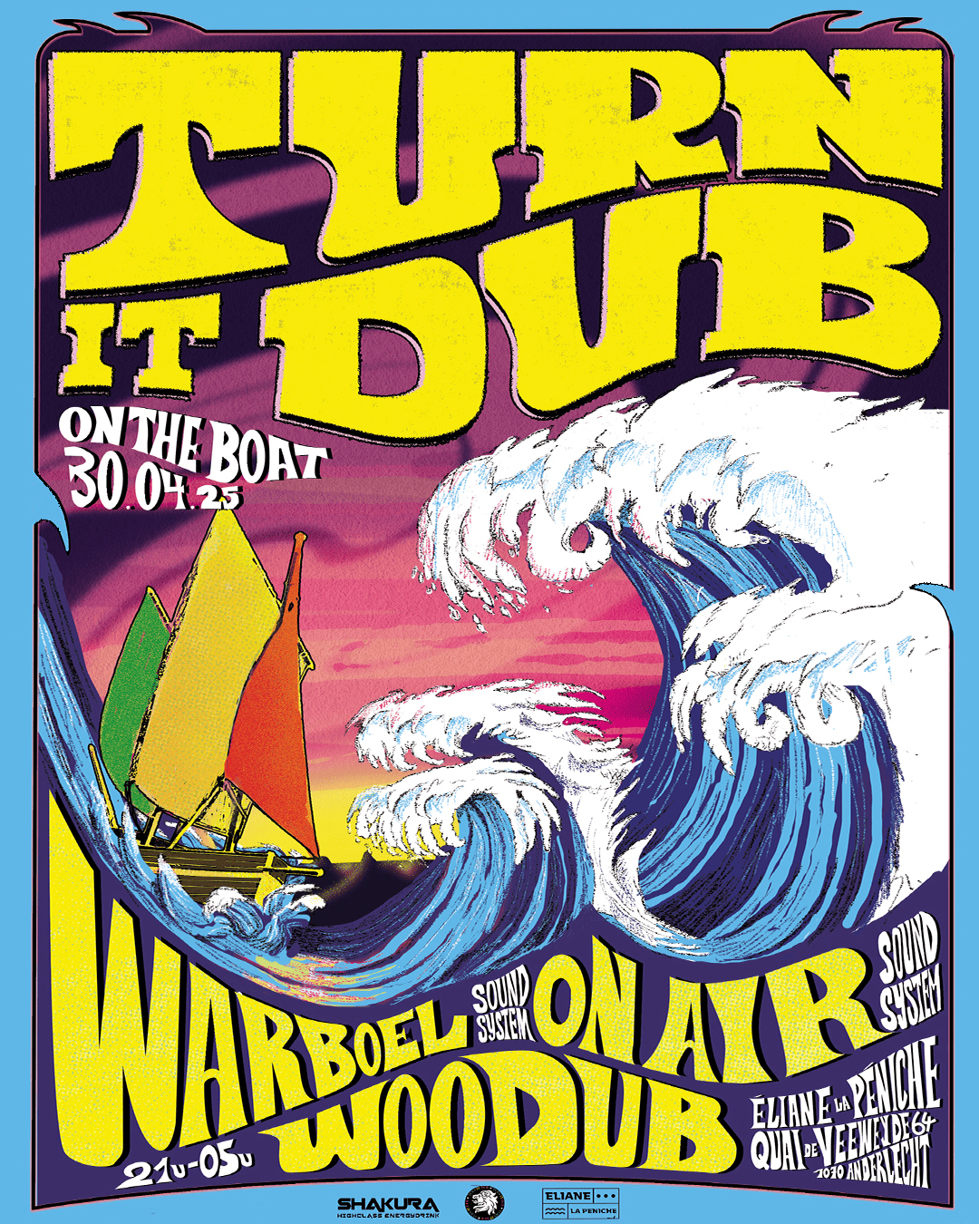 Tous à bord ! Après une première édition SOLD OUT, Turn It Dub reprend la mer à Bruxelles ! Cette fois-ci, nous revenons avec des basses encore plus lourdes, des rythmes plus profonds et la pure culture soundsystem dans le cadre unique d’Éliane La Péniche.